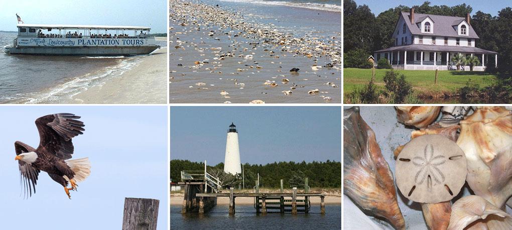 Visit an unspoiled barrier island. Who knows what Mother Nature has in store. A Lighthouse, Eagles, Dolphins, maybe even a Turtle. 1 1/2 hours to stroll the beach. Peace and quiet galore.