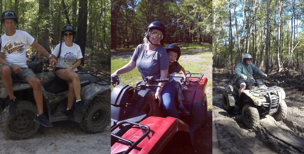 Carolina Backwoods ATV Adventure Tours is the #1 ATV Tour experience in Myrtle Beach. The guided tours are a great way to have fun…no experience necessary! Tours are about an hour and a half to 2 hours covering a large territory of trails with hills and open areas to ride. Your tour guide is trail certified and experienced so you don’t have to be. Protective gear is provided and riders can choose to get “down ‘n dirty” or stay “high ’n dry”.