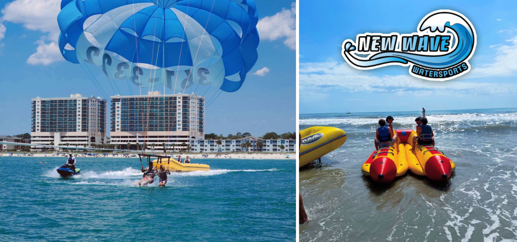 Welcome to New Wave Watersports! We are a group of captains dedicated to making your vacation one to remember. Come enjoy a bird’s eye view from one of our Coast Guard inspected parasail boats or go for a cruise on a banana boat ride. Whichever ride you choose, we’re sure it will put a smile on your face.
